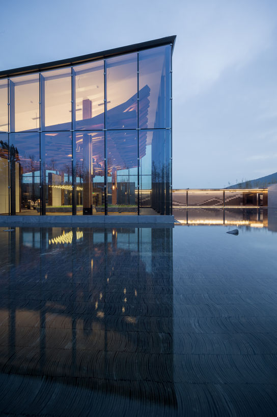 Small spaces for the entrance hall, screening rooms, separate meeting rooms and rear services, etc., is compressed into the east wing, ensuring a single piece of large – scale space for exhibition in the main building. This layout has granted the main building an open floor plan to achieve the multiple functions that it requires for exhibitions and as a community centre. Meanwhile, the abundant glazing of the facade gives views out to the city, reducing the architectural volume as it connects with the external space, enhancing its public characteristic.